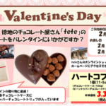 2026年1月30日 / 最終更新日時 : 2026年1月30日 yours-value 「tete」のバレンタインチョコレート バレンタインに徳地のチョコレート屋さん「tete」のチョコレートはいかがですか? 食べられるハート♡のチョコレートケースにビーントゥバーチョコレートが入ったハートコフレです♡ ご予約は各店サービスカウンターにお声かけくだ […]