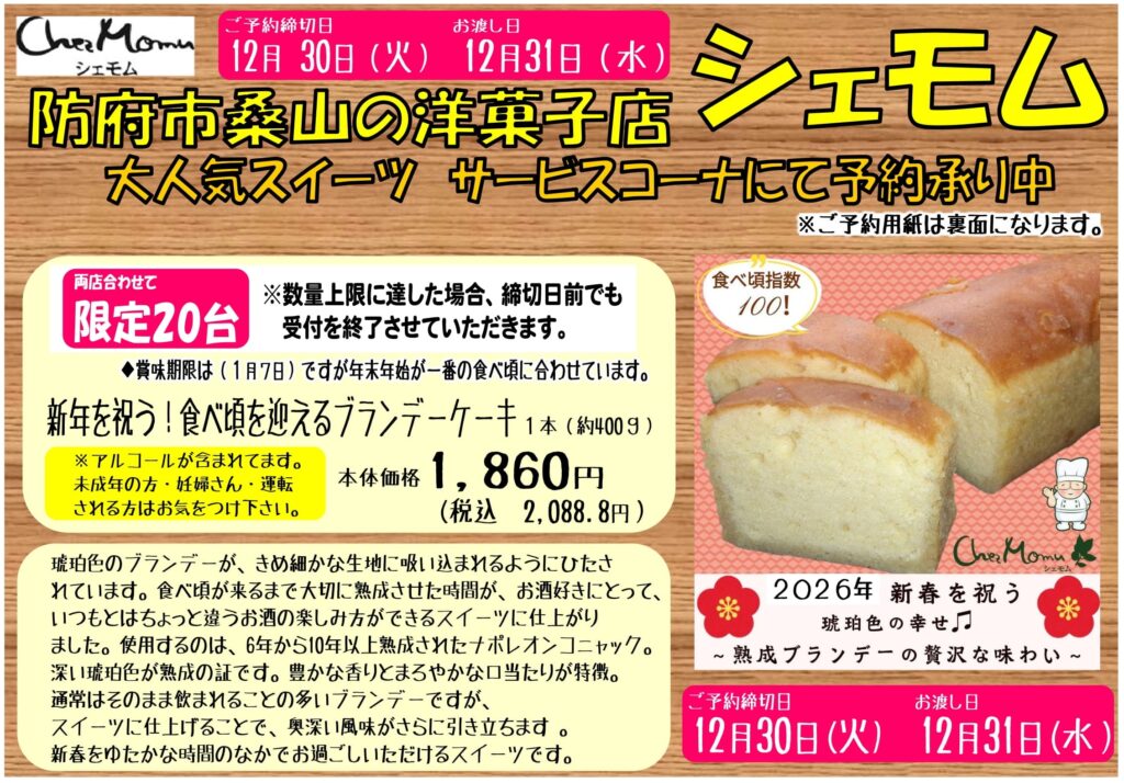 シェモムからはナポレオンコニャックが使用されたブランデーケーキです!
