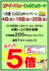 通常200円(税込216円)につき1ポイント付与しているコジカポイントをこの5日間は5倍の5ポイント付与になります!!