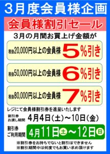 割引券は4月4日(土)~10日(金)にレジにてお会計時にお渡しします。